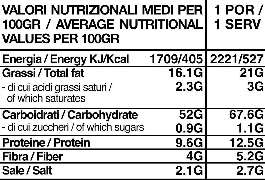 Rice 46.5%, extra virgin olive oil (20 ml sachet), inactive dry yeast, broccoli 4%, vegetable broth (salt, vegetable protein broth extract of SOY and corn, dehydrated vegetables in varying proportions (potato, carrot, onion, garlic, parsley, celery, tomato), corn oil.), tomato, rice flour, celery, carrot, garlic, onion, extra virgin olive oil. May contain traces of: GLUTEN, HAZELNUTS, MUSTARD, TUNA, CUTTLEFISH, EGGS. Contains no added glutamate or chemical ingredients. Store in a cool, dry place away from light. Pasta origin: Italy. Made with dehydrated ingredients. Cook before consumption. - OXYGEN ABSORBER INSIDE / - OIL SACHET INSIDE