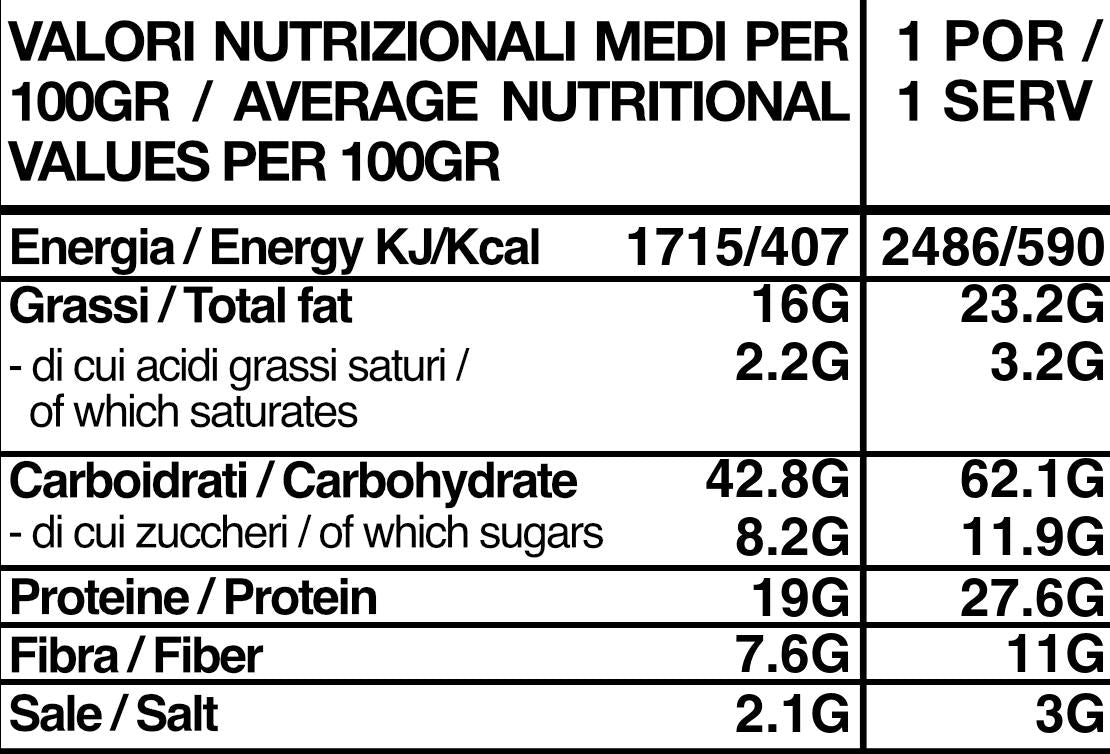 - Prodotto con ingredienti disidratati. Da consumarsi previa cottura.